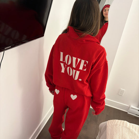LOVE YOU Red Quarter Zip Sweatshirt
