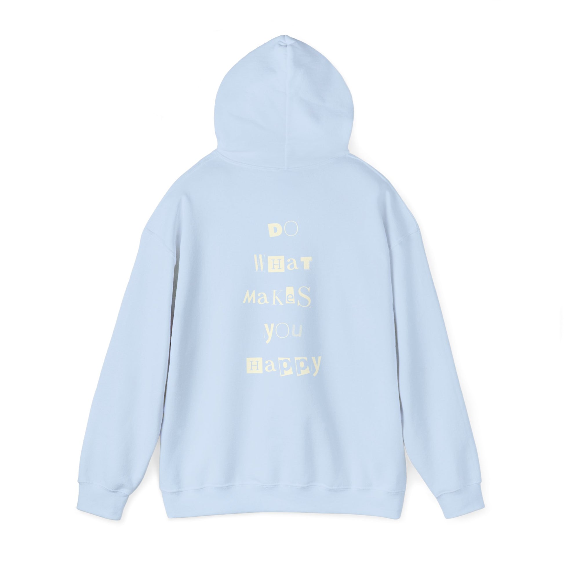 Do what makes you happy Unisex heavy blend hooded sweatshirt. Wear this cozy hoodie to remind yourself to be happy and to do things that bring you joy. Available in two different shades of blue.